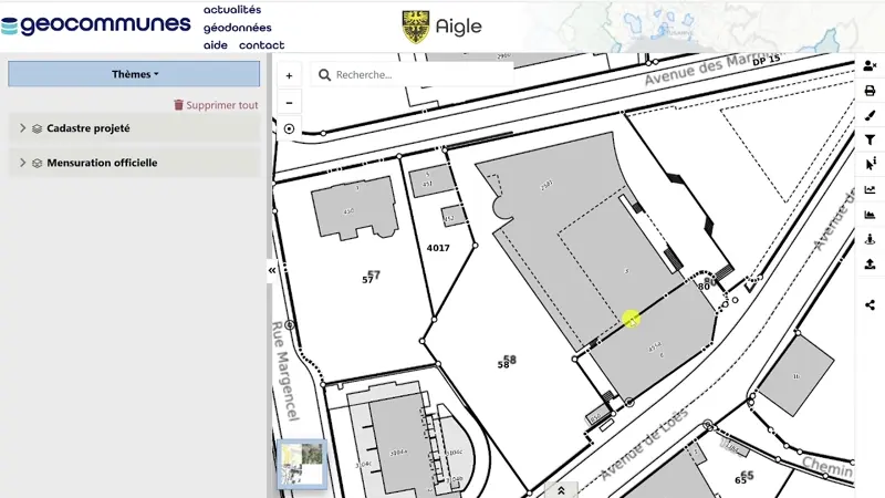 Il est possible de choisir les géodonnées, le fond de plan et les dessins présents sur la carte.