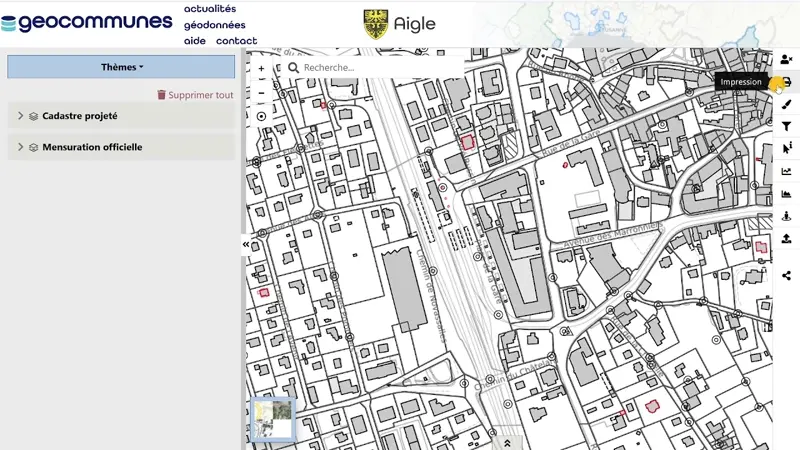 L’outil imprimer permet de générer un extrait du géoportail selon la zone visible à l’écran.