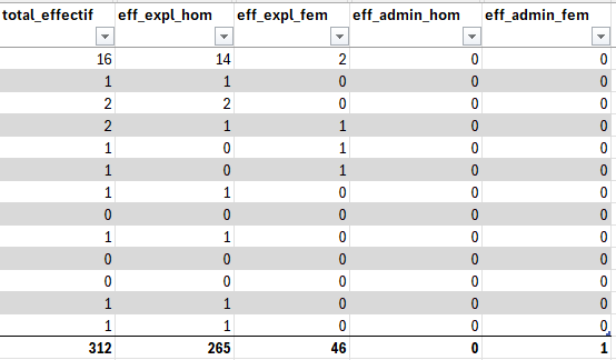 En complément des informations sur l’entreprise, l’export permet une statistique du nombre d’emplois administratifs et de production.