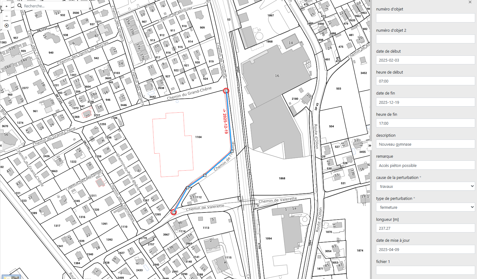 Elle est conçue pour être éditable directement depuis le guichet, afin de permettre à l’entité responsable (commune, police, etc.) de saisir les informations en tout temps.